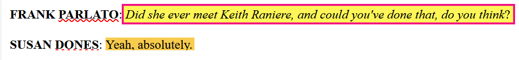 Raniere? Dones says in her deposition that Keith had sex with many of